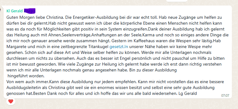 „Christina, ich interessiere mich für die Energetik-Mini-Ausbildung!“