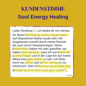 - Bitte informiere mich bei deiner Buchung, welche Themen ich für dich anschauen soll bzw. welche Blockaden du gelöst haben möchtest. (Achtung: Ich gebe keine Heilversprechen ab!)
